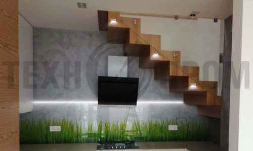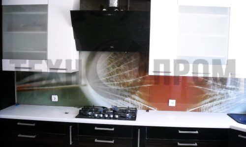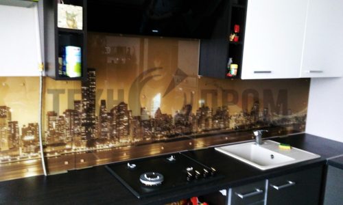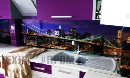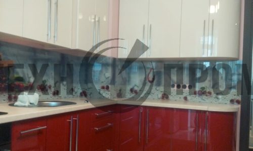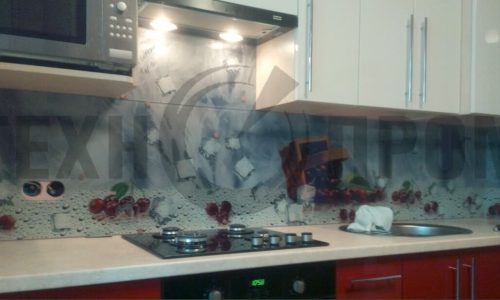 Стеклянный фартук обладает многими свойствами плитки, а в некоторых случаях превосходит ее: его легко очистить от загрязнений, а жар от плиты и влага возле раковины никак не скажутся на его внешнем виде. Уход за фартуком настолько прост, что в это трудно поверить. Побрызгать жидкостью для стекла и протереть тряпкой. И все — хлопоты закончились. Единственное, что нельзя использовать для очистки стекла — это абразивные (порошкообразные) моющие и чистящие средства. К тому же, для изготовления фартуков мы используем специальное закаленное стекло толщиной 6мм. Оно в пять раз прочнее обычного и не повредится даже, если ощутимо ударить его посудой. Для стеклянных фартуков мы используем ультрафиолетовую фотопечать — гораздо лучшего качества, чем пленочная. Нанесение больше похоже на распечатку принтером на стекле. А защитный слой краски предотвратит повреждение изображения во время использования. Сделанный точно по вашим размерам, с отверстиями под розетки, полотенцедержатели, трубы, стеклянный фартук прослужит много лет и не потеряет яркости цветов, целостности рисунка.