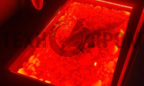- Окна. Этот тип стеклянного пола является наиболее распространенным. Он используется чаще всего в квартирах и загородных домах. В существующем полу делается ниша или пол наращивается на высоту 100-150 мм. По периметру планируемого стеклянного пола делается стальная рама, затем выполняется отделка боковых поверхностей ниши. Стекло укладывается в раму с использованием специальных изолирующих прокладок, чтобы избежать прямого касания с металлом. Как правило, ниша заполняется декоративным песком и артефактами. Часто используется подсветка. Возможно использование стекла с фотопечатью, с разбивкой большого рисунка на части (стеклянное панно на полу), создание витража (полупрозрачная фотопечать) или эффекта фальш-окон;